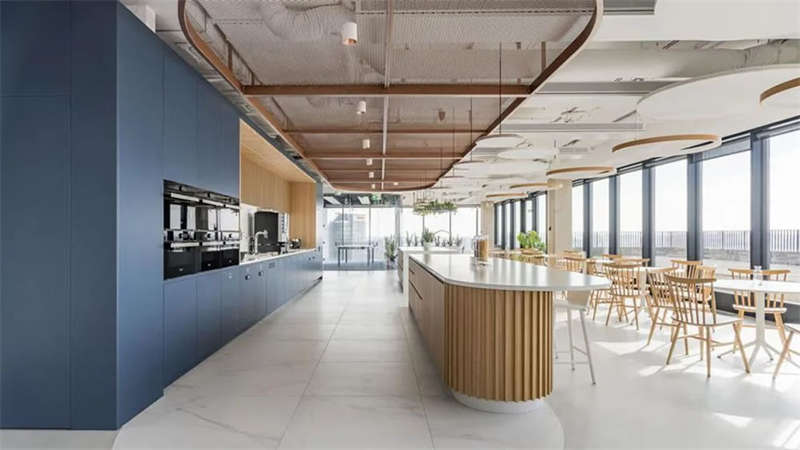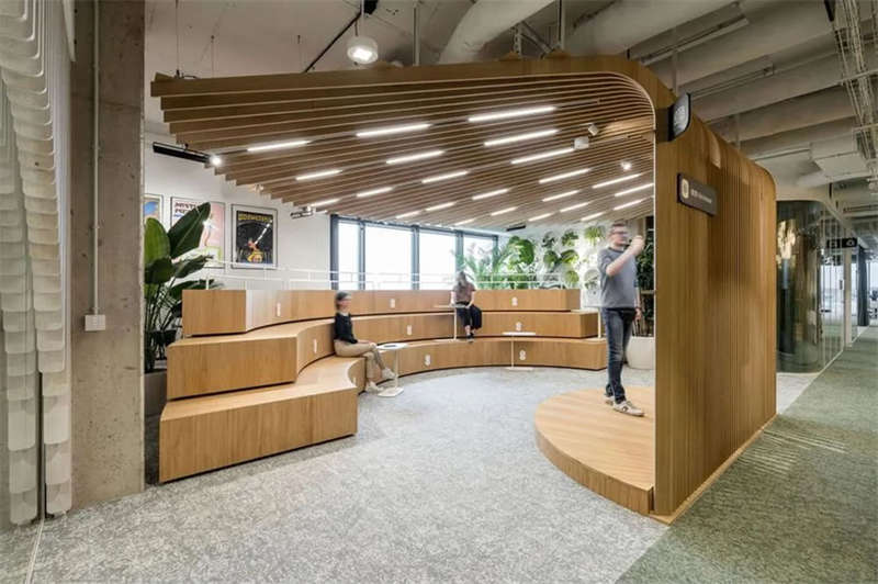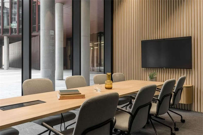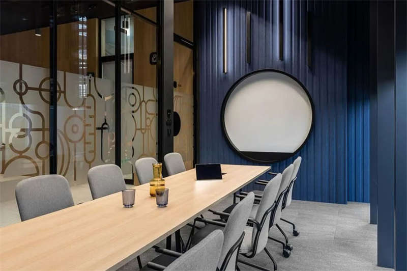 辦公室選擇了電動可調(diào)的升降辦公桌,以滿足員工個性化的需求。為了改善工作區(qū)域的聲學(xué)效果,在工作站之間和燈具上安裝了聲學(xué)板,并采用了大量的織物窗簾,從而減少了辦公室內(nèi)的噪音和混響。此外,在會議室配置了頂尖的IT/AV系統(tǒng),從而將辦公室工作與遠程工作緊密連接;安靜的聲學(xué)工作艙則配備了智能照明和高效通風(fēng)系統(tǒng)。