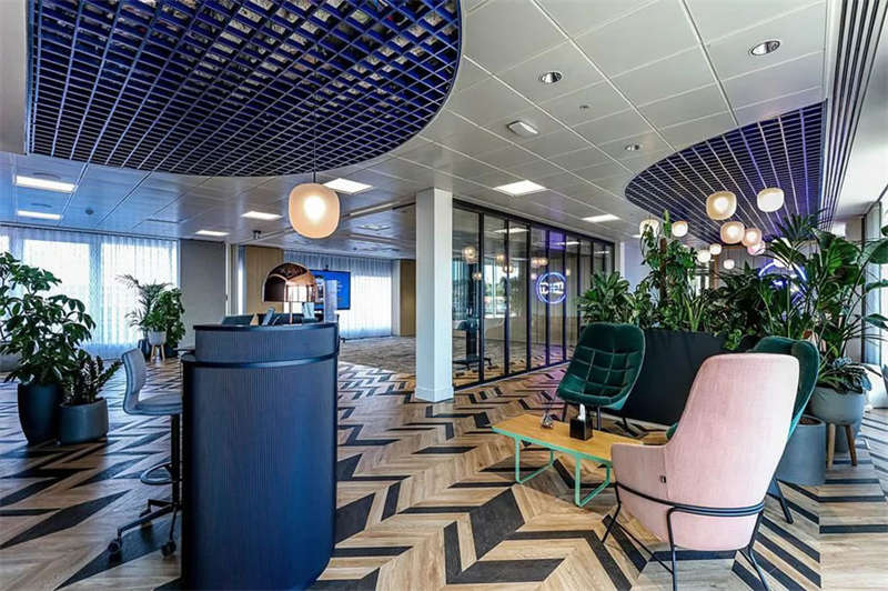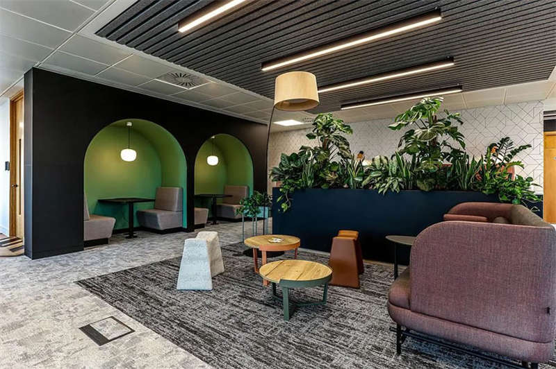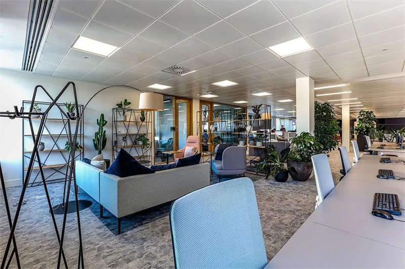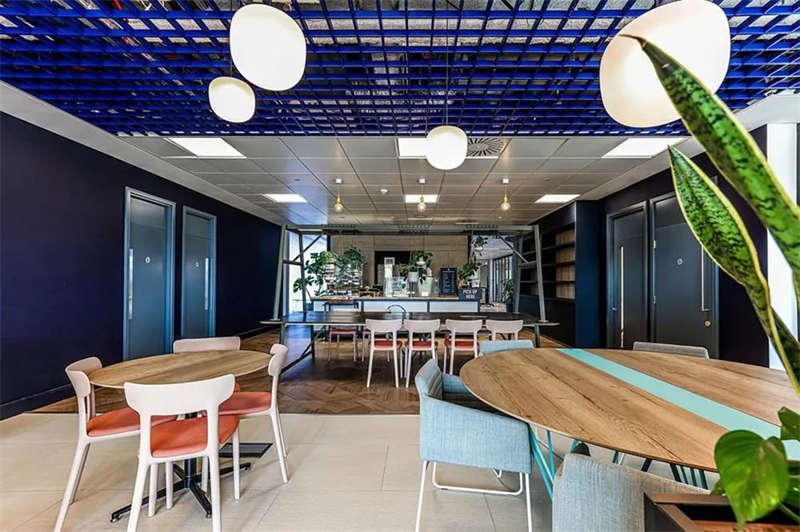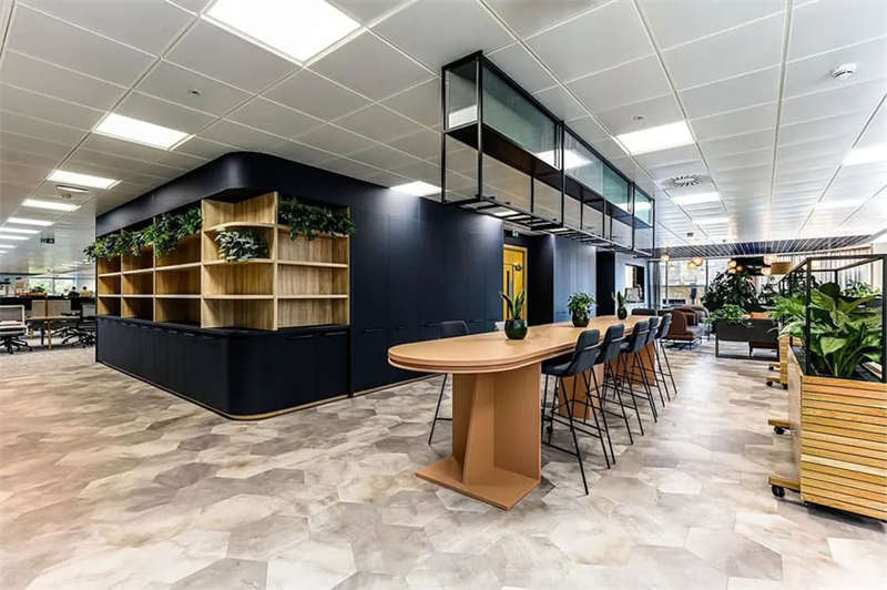 此番改造的一個(gè)重要主因是給到員工愿意回歸辦公室的理由。這意味著提升整體設(shè)施的實(shí)用性和美觀性,同時(shí)增加協(xié)作空間并整合遠(yuǎn)程工作人員的需求。因此對(duì)當(dāng)代前沿科技的投資成為關(guān)鍵要素。為了支持混合工作模式,設(shè)計(jì)公司在早期就任命了一名AV專家,以便可以通過(guò)應(yīng)用程序或基于桌面的預(yù)訂系統(tǒng)預(yù)訂工作空間。同時(shí),傳統(tǒng)工作站與可替代工作設(shè)施之間的界限也進(jìn)一步擴(kuò)大,平均(NIA室內(nèi)凈面積)比率為1:10。此外,之前辦公桌與員工1:1的比例也被新的1:1.6比例所取代。