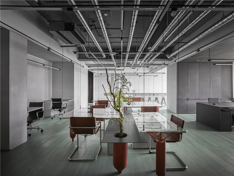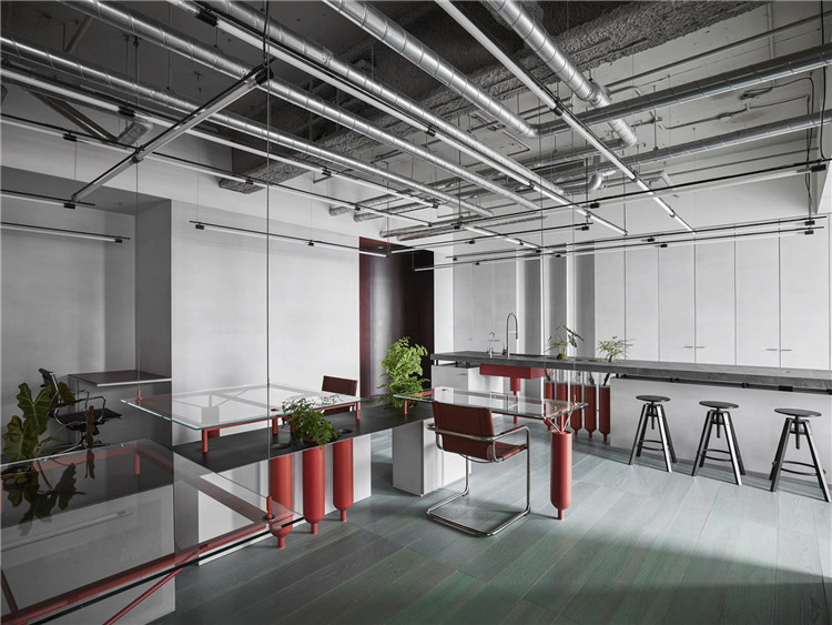 當靈感關鍵抓緊"科學"而非"辦公室",設計師希望強化產業(yè)屬性里的科學基底,扭轉一般人對辦公室的刻板藍圖.回歸產品本身最貼近的實驗室、工廠環(huán)境,日日可見的試管、生鐵黑鐵、氣體輸送管,以及包裝承載科技氣體的獨特鋼瓶,擷取生產鏈上再熟悉不過的材質與造型,拆解轉換成辦公空間的結構形體.