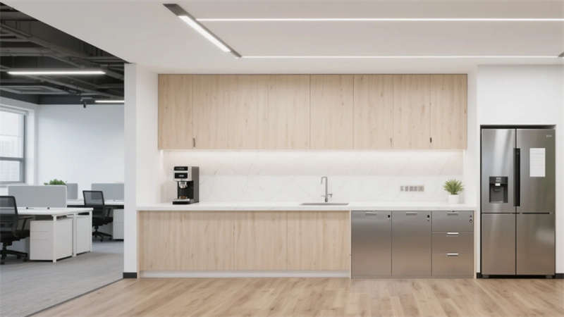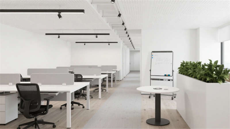 室內(nèi)空間延續(xù)外立面設計語言,企業(yè)大堂通過技術創(chuàng)新實現(xiàn)淺白大理石與木紋墻面的無縫拼接,懸浮式線性燈光系統(tǒng)可隨自然光線智能調(diào)節(jié)色溫。開放式辦公區(qū)配置智慧化模塊組合,可升降桌體與軌道射燈靈活適配多元場景,協(xié)作島集成無線充電與環(huán)境感知功能。高管辦公室采用智能霧化玻璃隔斷,實現(xiàn)隱私與通透的自由切換。科技會議室搭載高清透明顯示系統(tǒng)與多聲道聲學設備,電動百葉簾與補光系統(tǒng)聯(lián)動打造智能會議環(huán)境。