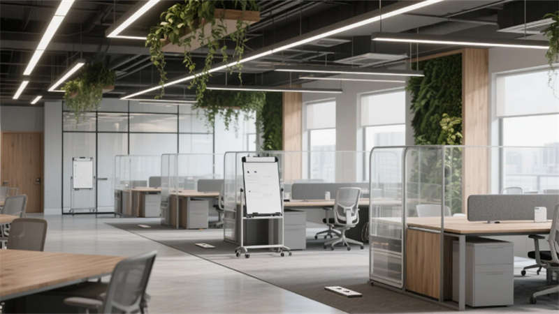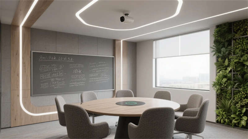 設計更以人文觸覺消解科技冰冷感:企業(yè)標志性的霧青藍貫穿于軟裝細節(jié),4000K色溫照明呵護視覺舒適度,模塊化綠植系統(tǒng)構建立體呼吸網(wǎng)絡。從智能調光玻璃到聲學毛氈墻面,每處創(chuàng)新皆隱于無形,讓科技真正服務于人的感知體驗。這座合肥辦公空間,正以靜默的設計語言詮釋著未來工作場域的更多可能——當自然、科技與人文在此共振,辦公不再是程式化的容器,而成為激發(fā)創(chuàng)造力的有機生命體。