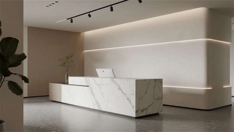 本案以現(xiàn)代簡約美學(xué)重構(gòu)辦公生態(tài),通過純凈的灰白基底與溫潤木色碰撞,打造兼具理性與人文的協(xié)作場域??臻g摒棄繁復(fù)裝飾,以線性光影為語言:從貫穿天花的前臺燈帶,到懸浮會議室的透光玻璃盒體,光成為劃分功能的隱形脈絡(luò)。