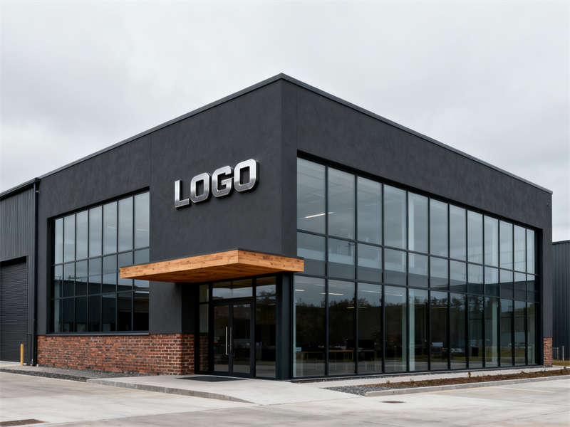 本設計聚焦合肥工廠辦公室的功能與美學融合,以極簡工業(yè)風為核心基調,打造風格統(tǒng)一且兼具實用性的辦公空間。外觀設計上,深灰色外墻搭配大面積玻璃落地窗,既貼合工廠園區(qū)的工業(yè)屬性,又通過原木色雨棚增添溫馨感,讓建筑在簡潔中凸顯辦公場所的特質。?