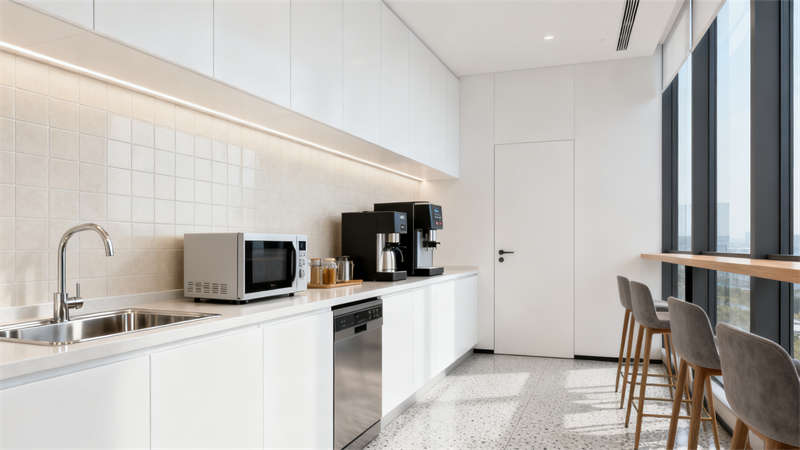 會議室設(shè)計(jì)強(qiáng)調(diào)專業(yè)性與實(shí)用性,合理的空間規(guī)劃確保人員活動便捷,簡約的裝飾搭配適當(dāng)?shù)恼彰鳎瑺I造出專注的會議氛圍。休閑區(qū)域則注重溫馨感,通過舒適的家具與柔和的環(huán)境營造,為員工提供放松身心的空間,助力提升工作效率。?