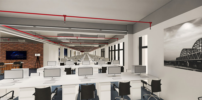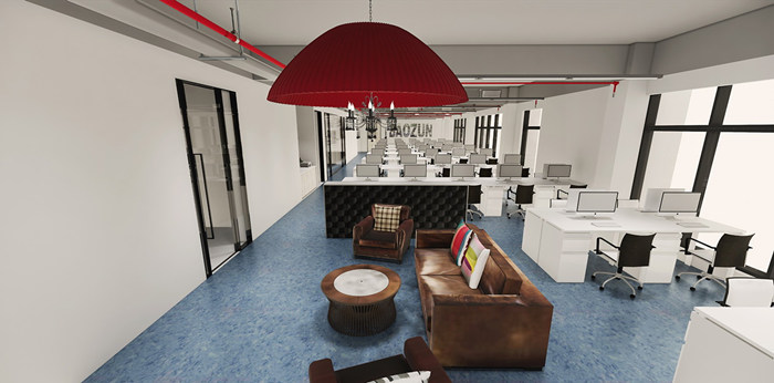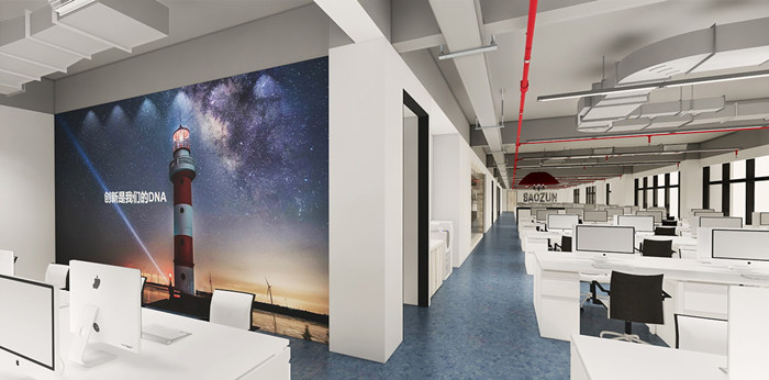 電子商務商業(yè)伙伴和領先的技術研發(fā)及解決方案公司。設計團隊根據電商的科技創(chuàng)新與行業(yè)桂冠特性,在設計中采用具有科技力量的LOFT風格,并將企業(yè)特性經過藝術手法運用到辦公空間設計之中,使平常的空間關系發(fā)生了變化,從而營造出具有科技、創(chuàng)新、活力的辦公空間氛圍。