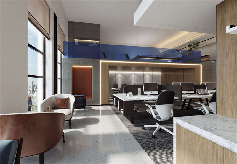 3、董事長辦公室翻新改造 董事長的辦公室翻新設(shè)計(jì)在風(fēng)格上一定要大氣、簡潔且明亮,光線要好。一般董事長辦公臺的位置盡量靠近窗戶,即可保持室外足夠的光線照射進(jìn)來,同時在工作疲憊的時候抬頭即可以欣賞室外的景致,很好的緩解工作的壓力和視覺上的疲勞。同時在地面改造部分,可以鋪設(shè)實(shí)木地板彰顯辦公空間的檔次與品質(zhì),在會客區(qū)域鋪設(shè)淺灰色的帶有圖紋的地毯,即能減少地面色彩上的單調(diào),也可以起到隔音的良好效果。