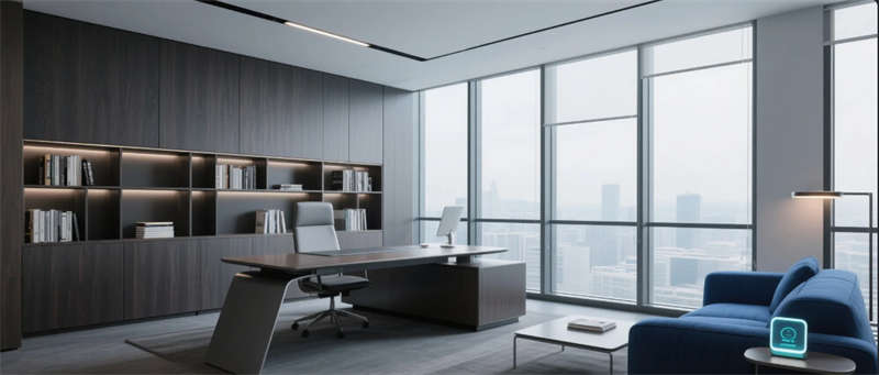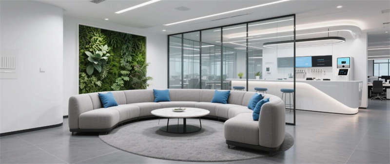 這座金融企業(yè)辦公樓的設(shè)計以智能科技融合為核心,巧妙結(jié)合現(xiàn)代簡約美學(xué)與功能性,為日常辦公注入活力與效率。整體空間采用流暢的線條和中性色調(diào),通過玻璃隔斷和金屬細(xì)節(jié)營造通透感,藍(lán)色元素作為視覺亮點,象征創(chuàng)新與穩(wěn)定。大堂區(qū)以開放式布局歡迎訪客,智能照明系統(tǒng)調(diào)節(jié)氛圍;開放式辦公區(qū)強(qiáng)調(diào)協(xié)作,可調(diào)節(jié)家具提升舒適度;高管辦公室則注重私密與高效,落地窗引入自然光。會議室配備先進(jìn)投影技術(shù),確保討論精準(zhǔn);休息區(qū)和食堂區(qū)融入綠植與社交元素,促進(jìn)員工放松;多功能廳支持靈活轉(zhuǎn)型,滿足多樣活動;休閑區(qū)融合健身與閱讀,體現(xiàn)人文關(guān)懷。設(shè)計不僅優(yōu)化工作流線,還強(qiáng)化了企業(yè)形象,將科技感與舒適性無縫銜接,打造一個前瞻性的辦公環(huán)境。位于合肥的這座空間,以城市現(xiàn)代精神為靈感,成為金融行業(yè)的標(biāo)桿之作。