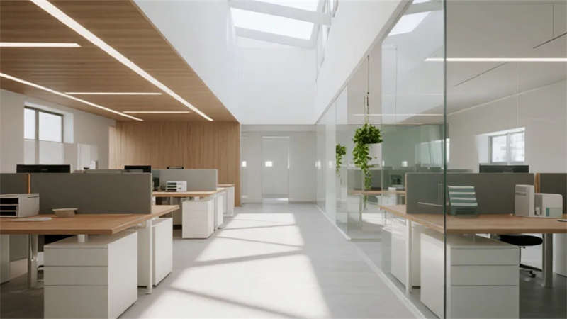 合肥辦公樓裝修設(shè)計(jì)效果圖,光影交織綠意
