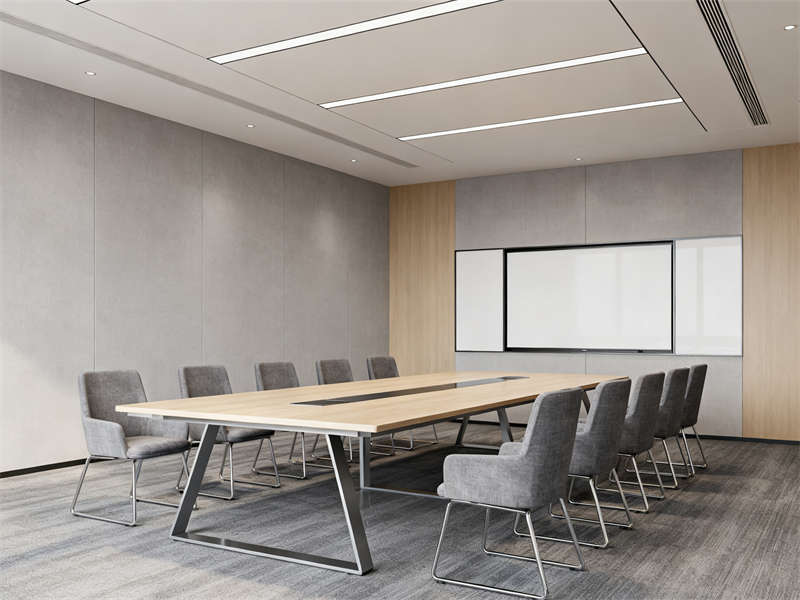 中型會議室圍繞協(xié)作功能展開,長條式會議桌與玻璃隔斷搭配,既保證空間開闊,又能與外部辦公區(qū)形成視覺聯(lián)動,灰色布藝座椅與頂部圓形吊燈呼應(yīng),讓會議場景兼具功能性與舒適感。茶水間則通過淺灰石英石臺面、木色護墻板與暖光燈帶,營造輕松休閑的氛圍,成為辦公間隙的放松節(jié)點。