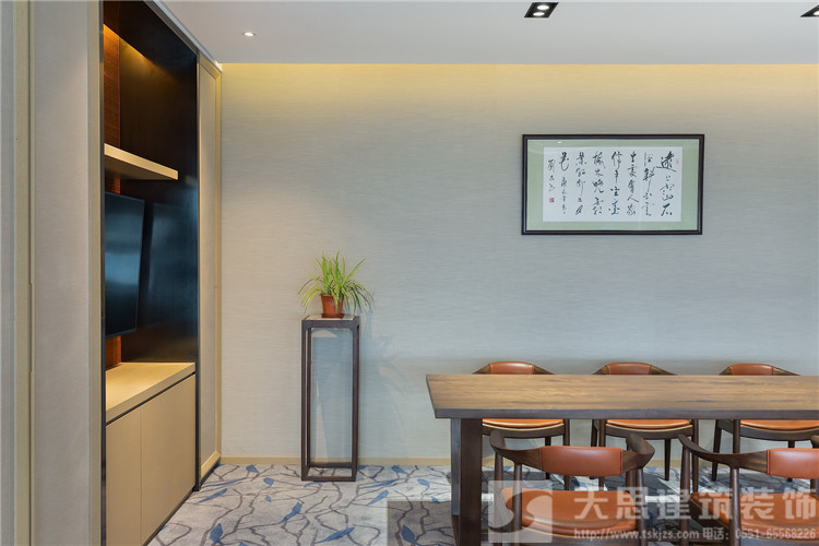 “你站在橋上看風景,看風景的人在樓上看你。明月裝飾了你的窗子,你裝飾了別人的夢。”人與人、人與景之間的交織互動在卞之琳的《斷章》里詩意呈現(xiàn),也同樣貼合設(shè)計師為同進置業(yè)公司辦公室定下的設(shè)計思路。他的空間設(shè)計結(jié)合江景地利、都市人文,在實用功能、格調(diào)品位之外,借助綠植規(guī)劃等巧妙手法,進一步突顯地產(chǎn)公司的職業(yè)形象與社會責任,不僅充分納景入室,更樹立起友好對外界面,成為一道嶄新的綠色都市風景。