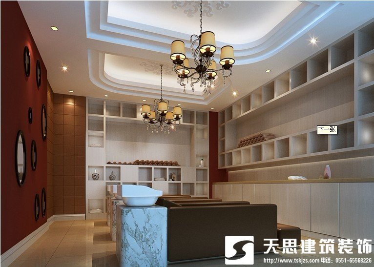 一般占整個店面面積的四分之三或三分之二不等(根據(jù)情況),操作區(qū)是直接服務顧客的地方,要求以寬松、干凈、舒適為宜,還要考慮到顧客方便、暢通。音樂一定用中貝音調播放,優(yōu)雅的古典名曲為佳。鏡子要明亮,椅子、床鋪要精美,外形要獨特,色調要統(tǒng)一。
