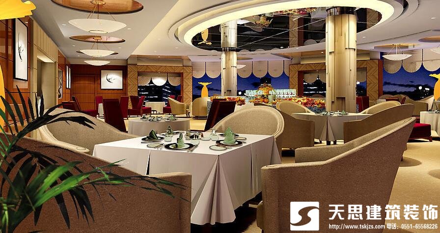 在西餐廳設(shè)計(jì)過程中,通常吸頂式燈用于天花安裝都緊貼,可增加頂棚亮度,并為餐廳室內(nèi)提供一般照明和局部照明,為直接采光形式的應(yīng)用。由于吸頂式燈緊貼于天花,因此由吸頂式燈組成的圖案可 以構(gòu)成天花的裝飾,裝飾性較強(qiáng)。常見的吸頂式燈具外觀有圓形、方形、三角形、矩形、條形、曲線形等多種幾何形式。燈外透光罩有玻璃、有機(jī)玻璃、硬塑等多種材料制成, 形成全透明、半透明、磨砂罩等幾種燈具形式。