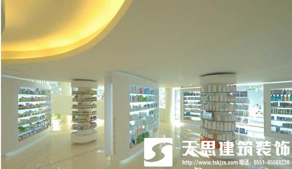 雖然藥店需要保持充足的光線,但是與此同時也要考慮到消費者的隱私。在藥店裝修設(shè)計中,在確保藥品空間在整個店面搶眼的空間布置下,還要創(chuàng)造出可以讓消費者隨意瀏覽的氣氛。讓消費者安靜選藥,設(shè)計到隱私的藥品可以設(shè)計在不是很顯眼的位置。藥店的吊頂不宜設(shè)計得太厚重,墻面和地板的顏色應(yīng)以淡雅為主,否則會給消費者以壓抑感。