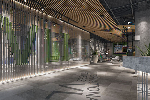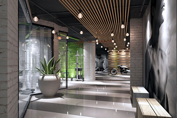 在室內空間中,主色大面積采用大地色(大地灰),不但最具親和力,也能夠讓體能訓練者在運動中逐漸找到運動的節(jié)奏,同時可以讓瑜伽類安靜的運動得到一種精神的放松。