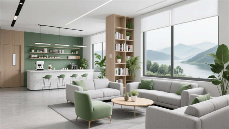這座辦公室設(shè)計以滁州為靈感,融合自然與創(chuàng)新元素,打造出和諧高效的工作環(huán)境。整體采用現(xiàn)代簡約風(fēng)格,線條流暢而開放,中性色調(diào)搭配木質(zhì)細(xì)節(jié),營造出清爽視覺統(tǒng)一感。設(shè)計中強(qiáng)調(diào)生態(tài)連接:綠植貫穿各功能區(qū),如休息區(qū)的山水窗景和協(xié)作區(qū)的綠植墻,呼應(yīng)滁州的自然環(huán)境,提升員工舒適度與歸屬感。核心亮點在于靈活空間規(guī)劃——模塊化家具和可移動隔斷支持快速重組,適應(yīng)不同工作模式,從專注區(qū)到協(xié)作區(qū),無縫切換個人與團(tuán)隊需求。茶水間和休息區(qū)融入社交元素,鼓勵非正式交流,而經(jīng)理辦公室的私密會談區(qū)則平衡了效率與人文關(guān)懷。照明設(shè)計巧妙利用自然光與LED結(jié)合,減少能耗,同時綠植點綴凈化空氣,體現(xiàn)可持續(xù)理念。最終,空間不僅提升生產(chǎn)力,更成為滁州城市活力的縮影,彰顯現(xiàn)代辦公的進(jìn)化方向。