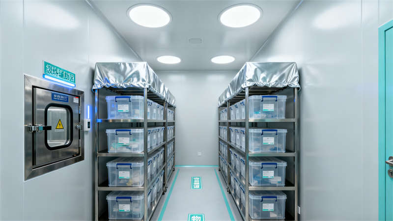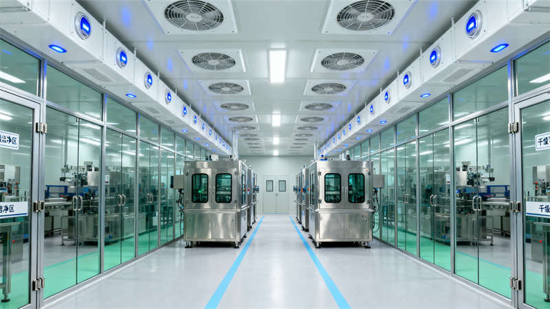 室內(nèi)空間劃分清晰,入口風(fēng)淋室作為潔凈第一道防線,搭配專屬衣柜區(qū),助力人員規(guī)范進(jìn)入;核心生產(chǎn)區(qū)以通透玻璃隔斷劃分,搭配高效過濾設(shè)備,營造潔凈通透的操作環(huán)境,操作人員身著專業(yè)潔凈服,盡顯規(guī)范作業(yè)氛圍。輔助區(qū)域同樣注重細(xì)節(jié),物料暫存間采用防塵物料架與傳遞窗設(shè)計(jì),確保物料潔凈存儲(chǔ)與轉(zhuǎn)運(yùn);無菌實(shí)驗(yàn)室配置專業(yè)安全柜與試劑柜,滿足高潔凈等級(jí)操作需求;潔凈走廊通過清晰標(biāo)識(shí)引導(dǎo)動(dòng)線,連接各功能區(qū)域,提升空間流轉(zhuǎn)效率;空調(diào)機(jī)房作為動(dòng)力核心,設(shè)備布局規(guī)整,保障整體潔凈系統(tǒng)穩(wěn)定運(yùn)行。?
