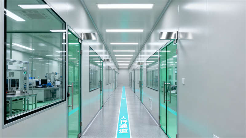 本設(shè)計(jì)以潔凈需求為核心,兼顧功能實(shí)用性與空間協(xié)調(diào)性,打造適配多場景的無塵環(huán)境。外觀上,建筑主體采用簡潔的淺灰色調(diào),搭配密封性能優(yōu)良的玻璃外窗與感應(yīng)式自動(dòng)門,既凸顯工業(yè)質(zhì)感,又從源頭減少外界污染侵入。?