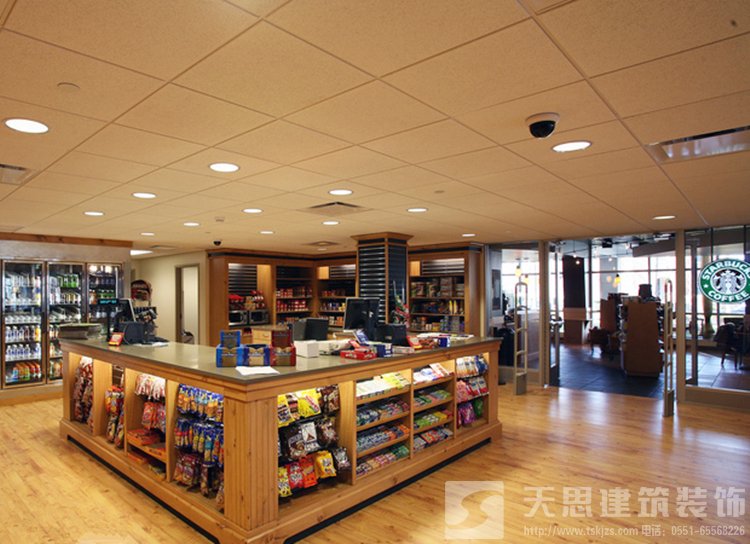 便利店的裝潢效果應(yīng)該最有效地突出商品的特色。裝潢不宜采用豐富、鮮艷的色彩,不要讓裝潢的色調(diào)來分散顧客對商品的視覺注意力,最好是天、地、墻都采用反光性、襯托性強(qiáng)的純白色。而且純白色給人的感覺就是整潔、干凈,同時(shí)天、地、墻統(tǒng)一色調(diào),會給人造成較大空間的視覺偏差。便利店對店鋪層高的要求一般在3米以上,但由于所選擇的店面多數(shù)處于底層,天花板下多數(shù)有下水管、電線管、消防管等管道,這時(shí)不要安裝吊頂天棚將這些管道隔離,只要這些管道粉刷成純白色,并將光源置于管道之下即可,這樣既可以保證商店的空間,又可以節(jié)省費(fèi)用。