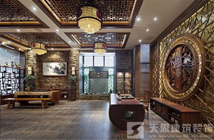 古典中式裝修茶樓會所案例給人一種仿佛回到優(yōu)雅恬淡的田園般輕松愜意的生活情趣,整齊有序且工藝精湛的磚雕與軟裝配飾凸顯茶樓的精致與靜雅,下面請欣賞天思裝飾為大家?guī)沓恋硪丫玫淖髌?ldquo;合肥茶樓會所中式裝修案例圖”。