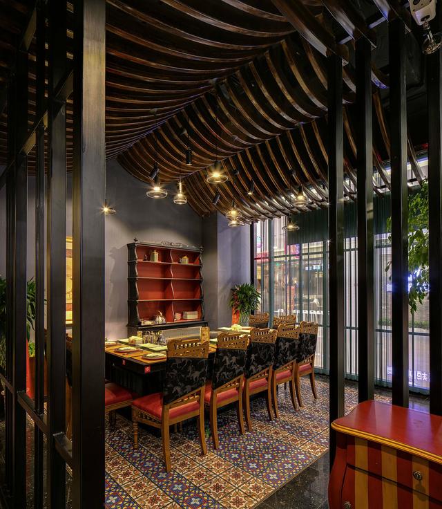 設(shè)計(jì)時(shí)采用色彩的沖撞,詮釋一種低調(diào)的腔調(diào)-隨性、自我、隨性、自我,恰如這家餐廳新秀傳奇風(fēng)范的彰顯。自由而富有當(dāng)代氣息的空間設(shè)計(jì),餐廳工業(yè)時(shí)代的裝飾細(xì)節(jié)與個(gè)性且富有設(shè)計(jì)感的木質(zhì)家具展現(xiàn)了設(shè)計(jì)師前沿的設(shè)計(jì)理念。
