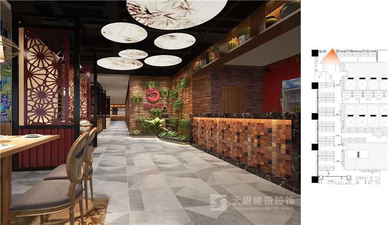 夢徽州酒店四樓火鍋店設(shè)計效果