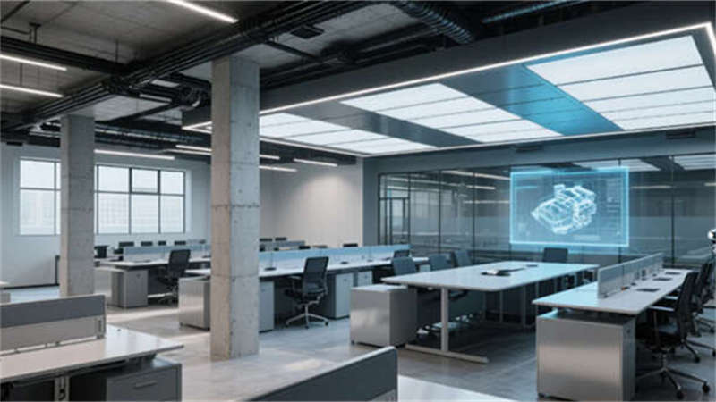 設(shè)計(jì)深度融合功能與美學(xué):配電房銅排走線展現(xiàn)工業(yè)秩序美,設(shè)備維護(hù)區(qū)AR檢修投影墻提升運(yùn)維效率,全廠采用磁性管線槽蓋系統(tǒng)實(shí)現(xiàn)“隱形工程”。5000平空間以金屬灰為主調(diào),局部注入企業(yè)藍(lán)與安全橙,在冷峻工業(yè)風(fēng)中賦予人文溫度,為合肥高端制造產(chǎn)業(yè)升級(jí)提供標(biāo)桿范本。