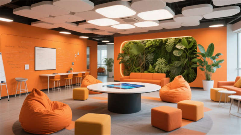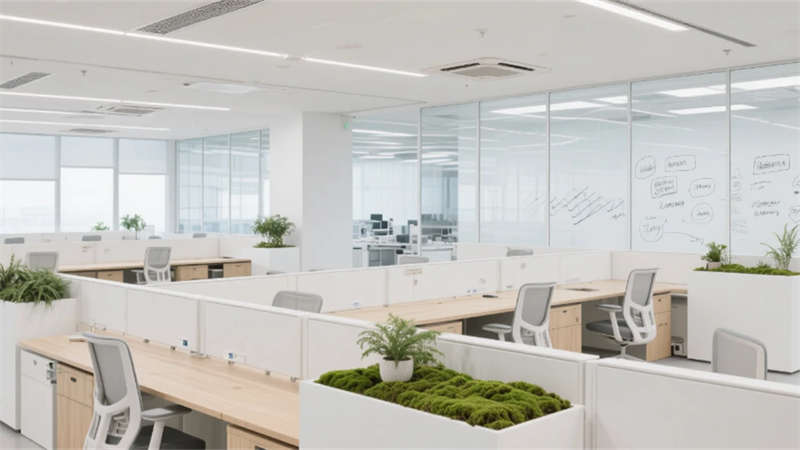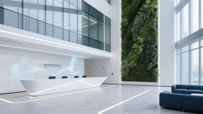 步入其中,純凈的白色與淺灰基調(diào)構(gòu)筑出開闊明亮的基底,大面積玻璃幕墻邀請陽光自由流淌。室內(nèi),垂直綠墻與蔥郁盆栽如音符般跳躍,為嚴謹?shù)难邪l(fā)環(huán)境注入蓬勃生機。開放辦公區(qū)強調(diào)協(xié)作與靈活,可書寫的玻璃墻面激發(fā)無限創(chuàng)意;高度自動化的核心生產(chǎn)車間則如同精密的樂章,潔凈無塵的環(huán)境、流線型的自動化設備與身著無塵服的工程師,共同演繹著尖端制造的嚴謹與高效。從充滿科技藝術(shù)感的展示廳、活力四射的創(chuàng)意協(xié)作區(qū),到靜謐專注的工作艙、溫馨舒適的休憩社交中心,再到專業(yè)大氣的會議空間,每一處功能區(qū)域都浸潤著統(tǒng)一的未來主義美學——簡約的線條、智能的光影、環(huán)保的材質(zhì)與克制的企業(yè)色點綴。