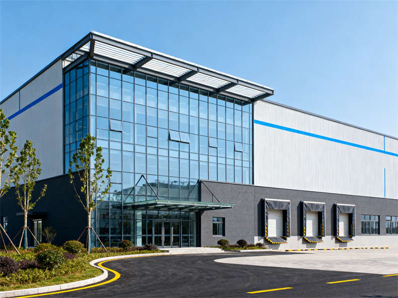本設(shè)計(jì)以現(xiàn)代簡(jiǎn)約工業(yè)風(fēng)為基調(diào),注重功能性與美觀性的融合,為廠房打造出整體協(xié)調(diào)且各區(qū)域特色鮮明的空間。外觀上,采用鋼結(jié)構(gòu)框架搭配雙層中空玻璃幕墻,局部輔以深灰真石漆墻面,既弱化了工業(yè)建筑的厚重感,又彰顯出現(xiàn)代氣息,周邊綠植與環(huán)形車道的設(shè)計(jì),讓廠房與環(huán)境和諧共生。?