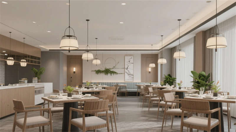 這個(gè)酒店設(shè)計(jì)以現(xiàn)代簡(jiǎn)約風(fēng)格為核心,通過(guò)統(tǒng)一的色調(diào)和元素,創(chuàng)造出和諧而優(yōu)雅的空間體驗(yàn)。大堂作為入口,以淺木色和白色為主調(diào),配以舒適的沙發(fā)和綠植,營(yíng)造出welcoming的氛圍。前臺(tái)延續(xù)簡(jiǎn)約理念,木質(zhì)柜臺(tái)和藝術(shù)細(xì)節(jié)彰顯精致感。餐廳采用開(kāi)放式布局,木質(zhì)桌椅和吊燈的點(diǎn)綴,讓用餐時(shí)刻充滿輕松與自然氣息。酒吧區(qū)則以深色吧臺(tái)和暖光照明,提供私密而時(shí)尚的社交空間。客房設(shè)計(jì)注重舒適與隱私,大窗戶引入城市景觀,簡(jiǎn)約家具確保寧?kù)o的休憩環(huán)境。會(huì)議室專(zhuān)業(yè)而高效,中性色調(diào)和隱藏照明支持專(zhuān)注的商務(wù)活動(dòng)。健身房融入鏡面和綠植,活力十足又不失簡(jiǎn)約美感。水療區(qū)則強(qiáng)調(diào)寧?kù)o,柔和燈光和自然元素促進(jìn)身心放松。整個(gè)項(xiàng)目強(qiáng)調(diào)人與環(huán)境的連接,每個(gè)功能區(qū)都服務(wù)于寧?kù)o與精致的整體體驗(yàn),為賓客打造難忘之旅。