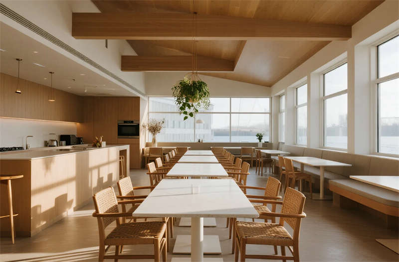 該設(shè)計以“城市綠洲”為核心理念,打造兼具功能與美學(xué)的經(jīng)濟型住宿空間。建筑外觀采用干凈利落的幾何切割,淺灰與玻璃材質(zhì)碰撞出輕盈現(xiàn)代感,入口綠植墻軟化都市冷硬氛圍。內(nèi)部空間貫徹簡約哲學(xué):模塊化家具系統(tǒng)最大化利用面積,榻榻米客房集成儲物與休憩功能,隱藏式燈光營造舒緩氛圍。公共區(qū)域強調(diào)共享與自然連接,早餐區(qū)落地窗引入晨光,綠植點綴的休息區(qū)提供社交場景。材質(zhì)選擇克制而統(tǒng)一,淺木色、微水泥與亞麻織物構(gòu)成低飽和度基調(diào),局部點綴抽象線條藝術(shù),呼應(yīng)合肥現(xiàn)代都市氣質(zhì)。設(shè)計聚焦高效運營與人文關(guān)懷,通過智能分區(qū)和環(huán)保細(xì)節(jié),為旅客提供回歸本質(zhì)的寧靜棲居體驗。