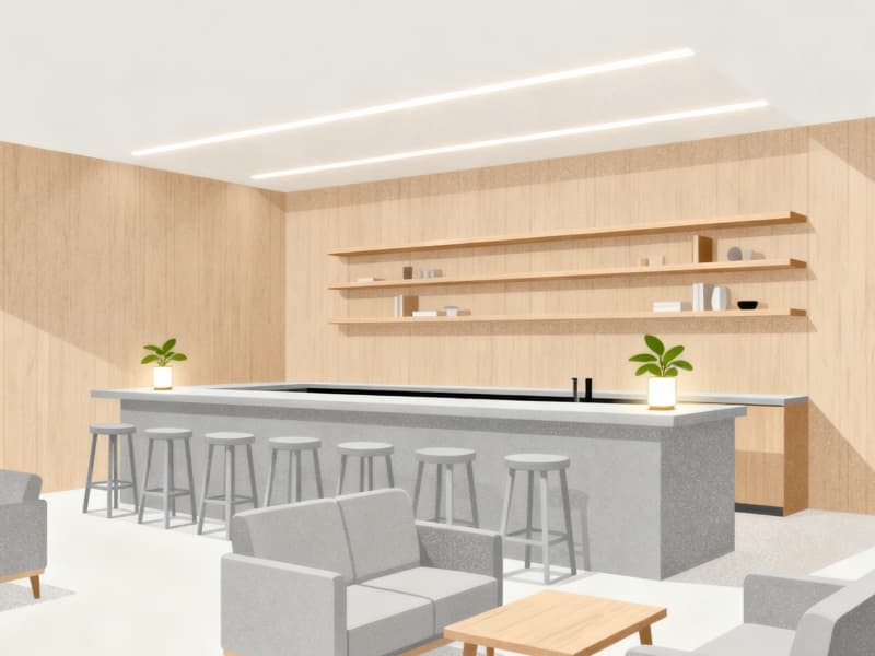 設(shè)計(jì)中注重細(xì)節(jié)的把控,從地面材質(zhì)的選擇(如走廊的靜音地毯),到照明的搭配(如茶吧的間接照明),再到綠植的點(diǎn)綴,每一處細(xì)節(jié)都圍繞“簡(jiǎn)約舒適”展開。既保證空間的整潔有序,又通過柔軟的材質(zhì)、柔和的光線與自然綠植,為簡(jiǎn)約空間注入溫度,避免過度簡(jiǎn)約帶來的生硬感。?