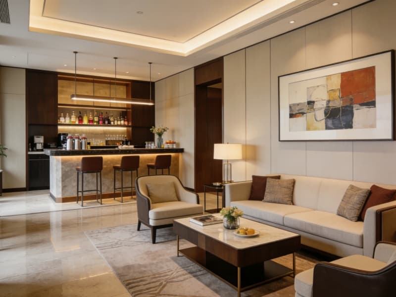 五層為特色配套層,設(shè)有行政酒廊、健身房與SPA區(qū)。行政酒廊提供專屬服務,健身房配備先進器材,SPA區(qū)以自然色調(diào)為主,搭配舒緩音樂,讓客人放松身心。