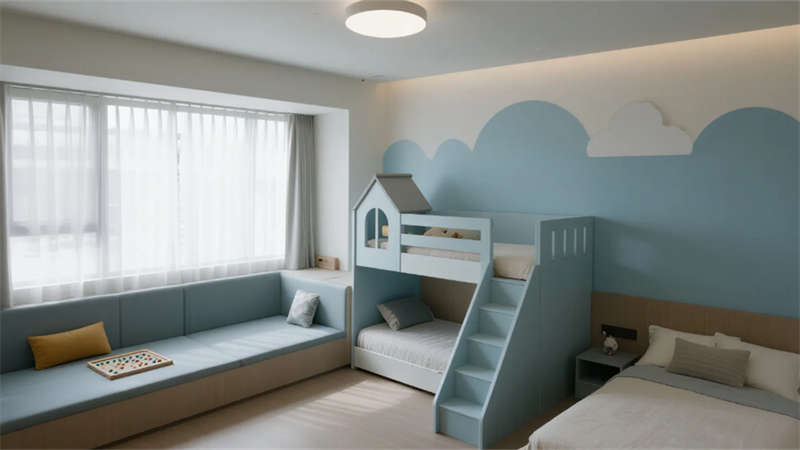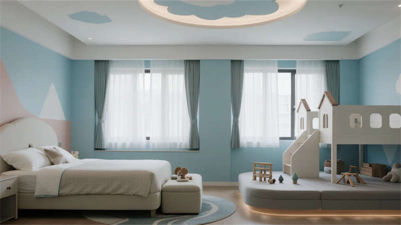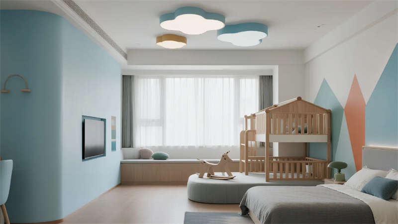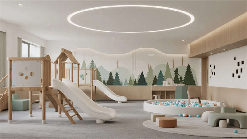 公共區(qū)域強(qiáng)調(diào)功能與美學(xué)的平衡:開放式游樂區(qū)釋放孩子天性,閱讀角的樹洞書架激發(fā)想象力,手工坊的彩虹收納系統(tǒng)培養(yǎng)創(chuàng)造力。戶外庭院融入沙坑與綠植,讓自然成為游戲場(chǎng);夜晚的星空影音室則轉(zhuǎn)為家庭溫馨劇場(chǎng)。整體設(shè)計(jì)通過流動(dòng)的空間布局,讓家長與孩子在簡(jiǎn)約美學(xué)中共享親密時(shí)光,重新定義合肥親子度假的體驗(yàn)方式。
