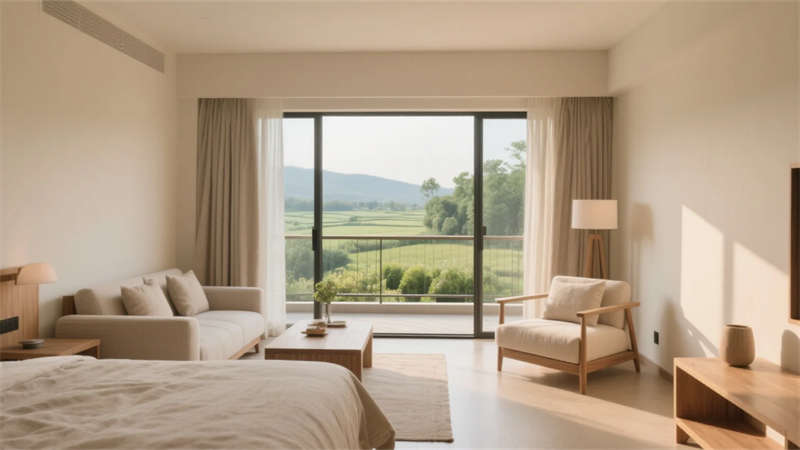 公共區(qū)域如大堂和餐廳,采用挑高與開(kāi)放布局,光線成為空間的主角??头吭O(shè)計(jì)去繁就簡(jiǎn),注重舒適性與視野,每間房都能感受到不同的自然片段。屋頂露臺(tái)是項(xiàng)目的亮點(diǎn),成為客人放空或社交的絕佳場(chǎng)所。整體設(shè)計(jì)不刻意追求裝飾,而是通過(guò)材質(zhì)、光影與自然對(duì)話,為都市人提供一處回歸寧?kù)o的棲息地。