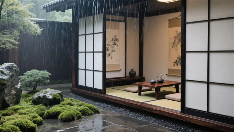 設(shè)計深諳留白哲學(xué),麻質(zhì)織物、陶藝器皿與胡桃木家具,以觸覺溫度軟化冷冽材質(zhì)。浴室如天然巖洞,玉石板透光似月暈;書閣古籍與當(dāng)代陶器并置,時空在翻頁間交融。庭院借景造境,雨簾青苔應(yīng)和自然呼吸,無邊水池倒映天光云影,火爐星夜下燃起歸巢暖意。