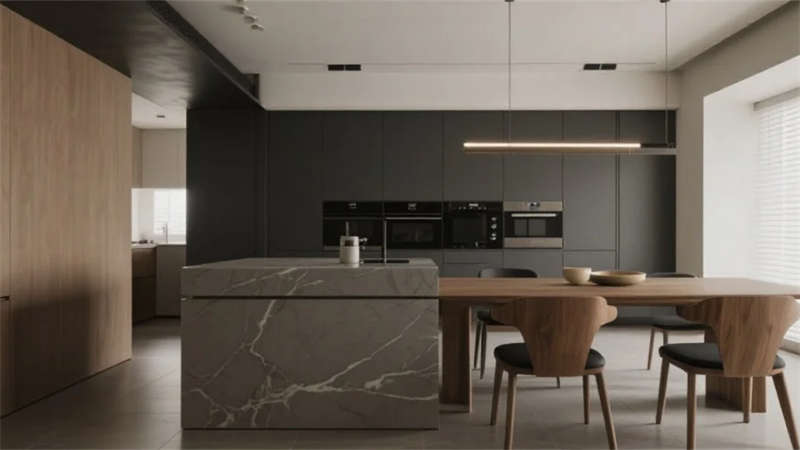 該設(shè)計(jì)以現(xiàn)代簡約語言重構(gòu)居住本質(zhì),將自然光影作為空間敘事的主角。建筑外觀采用純凈的幾何體塊組合,原木格柵與純白墻面對話,形成克制而溫暖的初印象。室內(nèi)摒棄冗余裝飾,通過微水泥的質(zhì)樸肌理、實(shí)木的溫潤觸感以及亞麻織物的呼吸感,構(gòu)建出具有生命力的簡約美學(xué)。