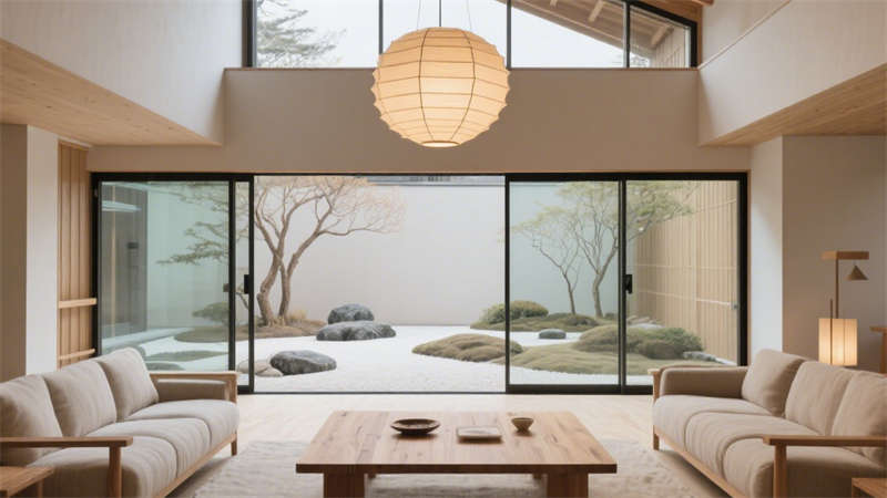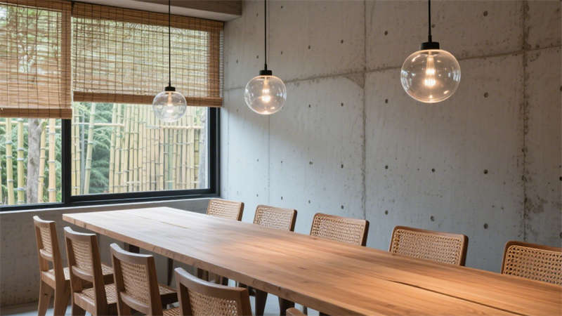 本設(shè)計以自然與現(xiàn)代的融合為核心,延續(xù)了原木、玻璃與清水混凝土的材質(zhì)語言,將合肥地域的溫潤氣質(zhì)與侘寂美學相呼應(yīng),打造出兼具舒適感與藝術(shù)感的居住場景。公共區(qū)域中,淺橡木色的柜體與天花線條連貫延伸,搭配通透的玻璃隔斷,讓光線自由穿梭,模糊室內(nèi)外的邊界;清水混凝土墻面保留了原始肌理,與苔蘚綠的軟裝陳設(shè)形成柔和對比,傳遞出質(zhì)樸而寧靜的氛圍。?