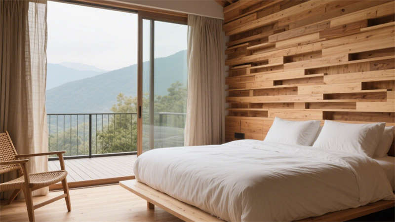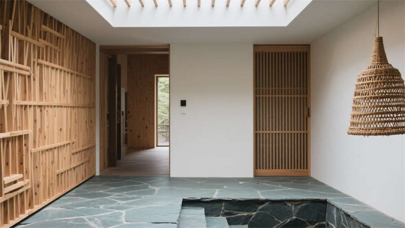 私密客房延續(xù)整體風格,床具與家具均選用簡約線條的原木款式,搭配淺灰色床品與局部的自然織物,營造出松弛的休憩環(huán)境。細節(jié)處,墻面裝飾以天然石材切片與手工陶藝,地面鋪設(shè)防滑耐磨的原木紋地板,既保證實用功能,又強化了自然質(zhì)感。整個設(shè)計沒有多余的繁復(fù)裝飾,而是通過材質(zhì)的碰撞、光影的變化與色彩的協(xié)調(diào),讓每一處空間都傳遞出 “歸于本真” 的居住理念,為入住者提供遠離喧囂、親近自然的休憩體驗。