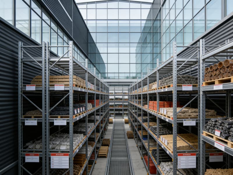 原料存儲區(qū)運用立體式金屬貨架,極大提升空間利用率,不同類別的原料分區(qū)明確,標(biāo)識清晰,方便取用與管理。