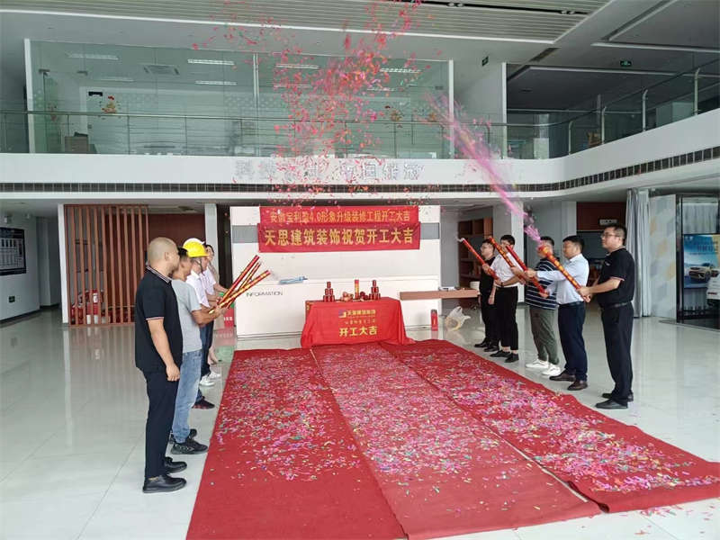 隨著禮炮一聲巨響,金錘重重砸下,在一片喜氣洋洋的氛圍中,安徽寶利盈4s店形象升級裝修工程正式開工啦,讓我們在這里道一聲:“開工大吉”!感謝業(yè)主選擇我們安徽天思裝飾為您服務(wù),我們必將不負(fù)所托,交付完美項目。如果有裝修上的需求,請聯(lián)系我們安徽天思裝飾,我們公司的使命是“實現(xiàn)顧客的夢想”!