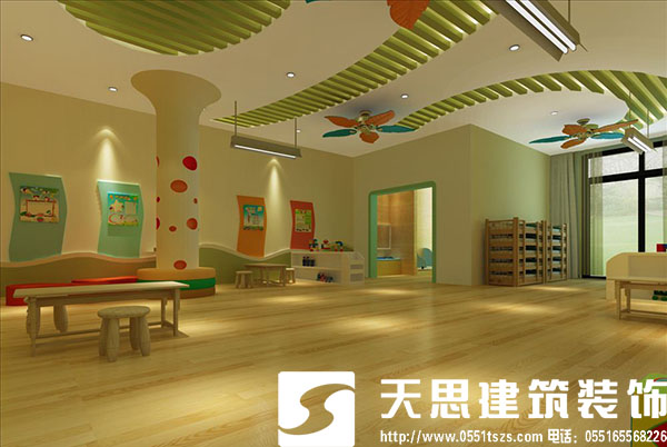 好的幼兒園裝修設(shè)計必須充分體會到孩子的需要,讓孩子們健康快樂的學(xué)習(xí)和成長,才是幼兒園設(shè)計成功的關(guān)鍵。要使幼兒在適合他們健康成長的環(huán)境中生活。安全、衛(wèi)生是重要的條件,幼兒園環(huán)境創(chuàng)設(shè)必須服從于衛(wèi)生和安全的要求,以保證幼兒的安全成長。合肥裝飾公司天思建筑裝飾公司您身邊的裝修專家,裝修詳情盡情咨詢:http://www.airpubcafe.com/