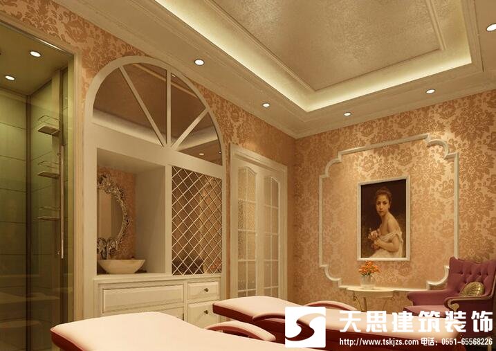 通過更換圖片,給美容院顧客以新穎之感,屏風(fēng)和隔斷的設(shè)計要考慮可移動性,如果能再配備燈光,個性的飾品點綴,具有現(xiàn)代感的流行線條等,就會給顧客一種美的享受。