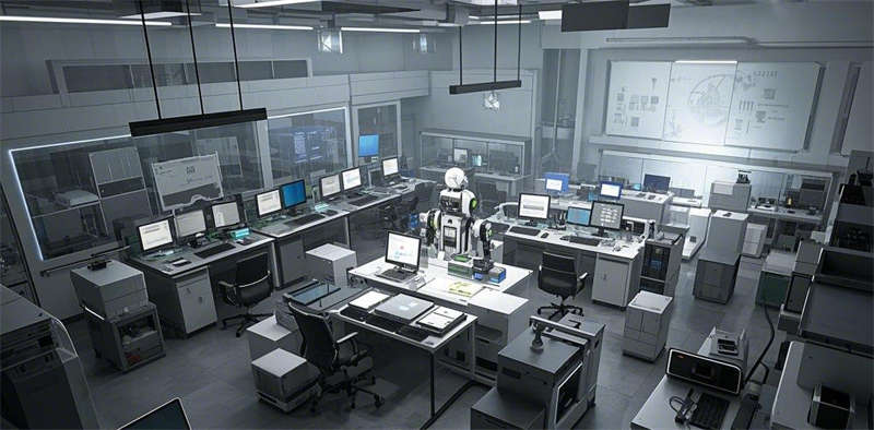 本次1000平方米機(jī)器人制作實(shí)驗(yàn)室設(shè)計(jì)以高效、科技與人性化為核心,打造多功能研發(fā)與生產(chǎn)空間。入口與接待區(qū)現(xiàn)代簡約,配備企業(yè)標(biāo)識和科技感裝飾,營造專業(yè)氛圍。機(jī)器人組裝區(qū)寬敞實(shí)用,工作臺和自動(dòng)化設(shè)備布局合理,滿足高效生產(chǎn)需求。研發(fā)與設(shè)計(jì)區(qū)開放式布局,配備3D打印機(jī)和白板,激發(fā)團(tuán)隊(duì)創(chuàng)造力。測試與調(diào)試區(qū)科技感十足,測試平臺和監(jiān)控設(shè)備確保產(chǎn)品性能。材料存儲與物流區(qū)高效有序,自動(dòng)化搬運(yùn)設(shè)備提升效率。會議室與協(xié)作區(qū)設(shè)計(jì)簡潔,智能設(shè)備支持高效溝通。