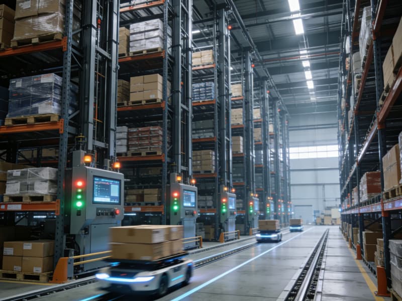 倉儲區(qū)運用自動化的立體貨架,通過物聯(lián)網(wǎng)系統(tǒng)實現(xiàn)精準庫存管理。智能運輸小車在劃定的軌道上穿梭,高效完成貨物搬運。