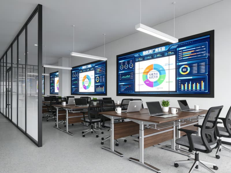 研發(fā)區(qū)充滿靈動氣息,開放式的辦公空間搭配可移動的玻璃隔斷,方便團隊靈活協(xié)作。桌椅選用符合人體工學的款式,搭配智能升降系統(tǒng)。墻面設置電子展示屏,實時展示項目進度與創(chuàng)意靈感。