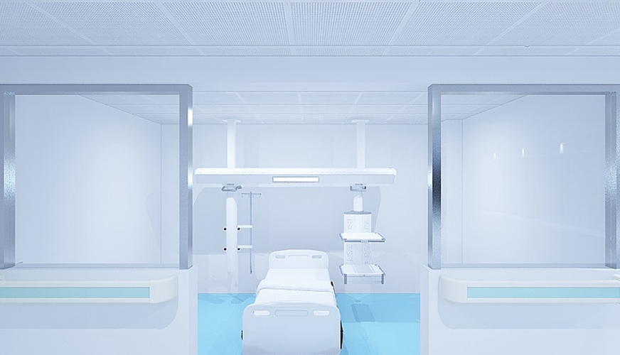 在本案中,設(shè)計(jì)師一改醫(yī)院的常規(guī)風(fēng)格,大膽使用了藍(lán)色為基調(diào).藍(lán)色向來代表著冷靜、睿智,也能起到平復(fù)人們情緒的暗示作用,這次使用在醫(yī)院中,更充滿了科技感.為與醫(yī)院定位相匹配,室內(nèi)并無多余的裝飾品,干凈、清爽是本次設(shè)計(jì)的最大特點(diǎn).同時(shí),設(shè)計(jì)師也非常注重空間細(xì)節(jié)的營造,如醫(yī)院的導(dǎo)視,就從病人的角度考慮,清晰顯眼,指向明確.