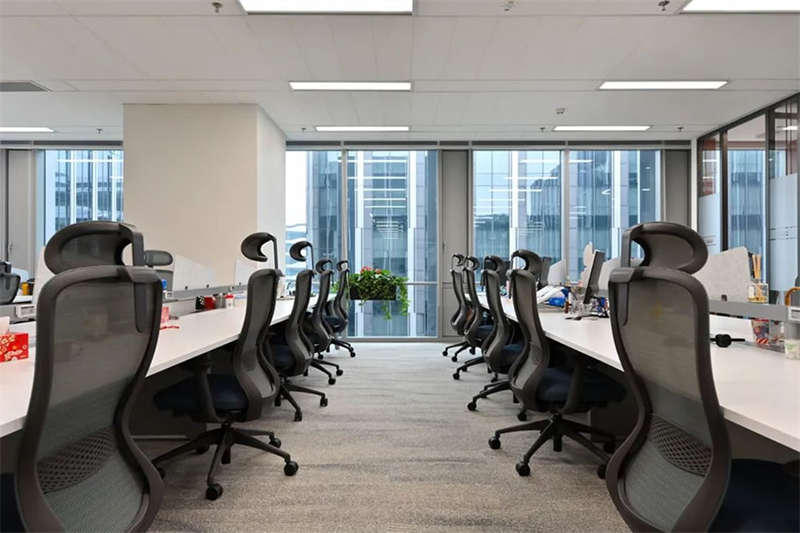 員工區(qū)部份選用了電動(dòng)可調(diào)的升降辦公桌,以滿(mǎn)足員工個(gè)性化的需求,白灰色的家具搭配,混搭淺木色的休閑洽談區(qū)域,地面選用流線款長(zhǎng)版的無(wú)膠水鋪裝的地毯相呼應(yīng)。提升了空間品質(zhì)和美感。