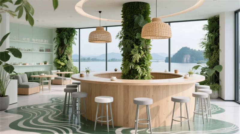 靜音艙與冥想穹頂成為平衡效率的呼吸點:蕪湖鐵畫衍生的藝術(shù)裝置、赭山色系漸變墻面與苔蘚微景觀,在科技框架中注入人文溫度。生態(tài)茶歇區(qū)環(huán)形綠植柱呼應(yīng)窗外垂直花園,模糊自然與空間的界限。
