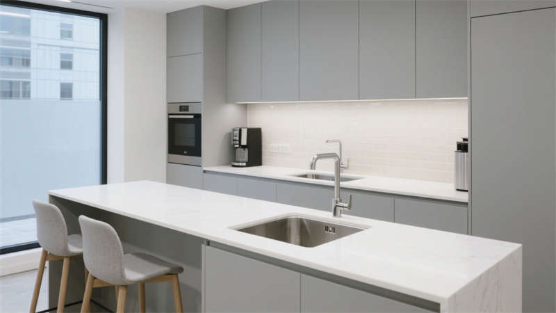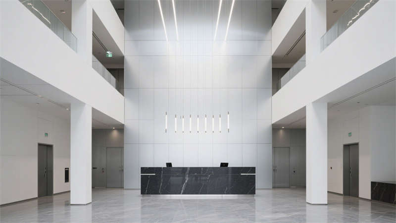 本設計圍繞現(xiàn)代簡約風格展開,從室外到室內(nèi)形成統(tǒng)一的視覺體系。室外效果圖呈現(xiàn)出簡潔大氣的建筑外觀,線條流暢利落,色彩搭配沉穩(wěn)雅致,既符合辦公場所的專業(yè)氣質,又能在周邊環(huán)境中展現(xiàn)獨特辨識度。?