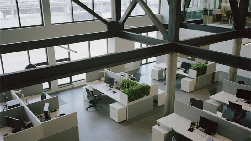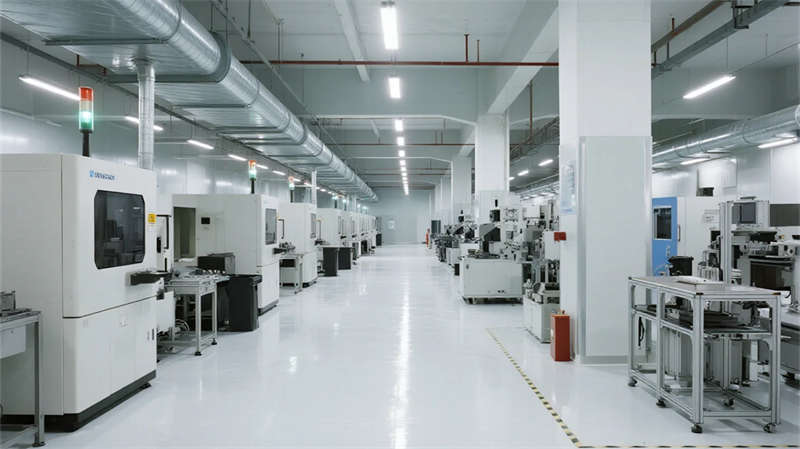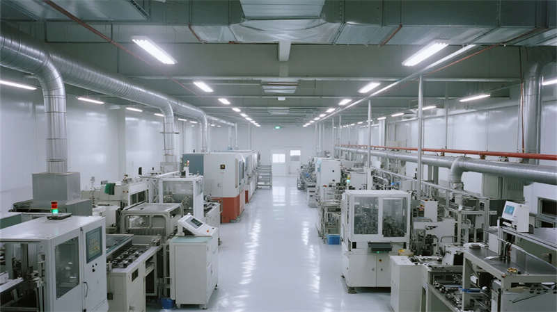 內(nèi)部空間延續(xù)"少即是多"哲學(xué):生產(chǎn)車間以銀白為主調(diào),設(shè)備管線規(guī)整排布于頂棚,環(huán)氧地坪反射線性燈光,營(yíng)造科技感十足的無(wú)塵環(huán)境;辦公區(qū)突破傳統(tǒng)隔斷,玻璃幕墻引入外部景觀,綠植墻自然劃分區(qū)域,形成通透開(kāi)放的協(xié)作場(chǎng)域。